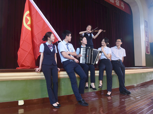 圖為4月24日該分行團委在開展金融知識宣講活動的間隙,組織部分青年團員在電影《芳華》取景地小院演唱共青團團歌,以別開生面的形式慶祝“五四”青年節,激勵青年員工不忘初心、不負芳華,為企業發展多作貢獻?! 鹾D嫌浾?nbsp; 梁磊 攝影報道