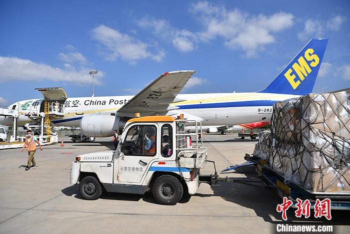 云南省郵政分公司寄遞事業部副總經理汪培坤介紹,該航線每周2至周6運行,首班航班載有25噸物資,其中有5噸為防疫物資。至此,中國郵政航空國際(地區)航線已達8條。