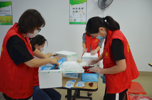 5月中旬,四川茂縣的甜櫻桃上市。浙江省玉環(huán)市郵政分公司積極參與當(dāng)?shù)厥姓_(kāi)展的消費(fèi)扶貧助力對(duì)口地區(qū)脫貧攻堅(jiān)活動(dòng),為茂縣甜櫻桃拓銷(xiāo)路、暢渠道。該分公司采用冷鏈物流的運(yùn)輸方式,將茂縣甜櫻桃運(yùn)到玉環(huán)市,再通過(guò)同城配送將甜櫻桃送到客戶(hù)手中。5月下旬至6月初,玉環(huán)市分公司已配送4批、近6600公斤茂縣甜櫻桃,助力拓寬茂縣優(yōu)質(zhì)農(nóng)產(chǎn)品銷(xiāo)售渠道。圖為玉環(huán)市分公司黨員志愿者在配送前檢測(cè)櫻桃品質(zhì)。 □葉瑋 攝影報(bào)道