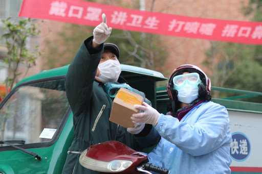 自疫情阻擊戰(zhàn)打響以來,被江蘇省金湖縣郵政分公司員工譽為“郵嫂”的王紅,退掉本已預(yù)訂好的車票,留下來與丈夫楊和仁一起投遞郵件,夫妻二人并肩戰(zhàn)“疫”。□吉爾云 攝