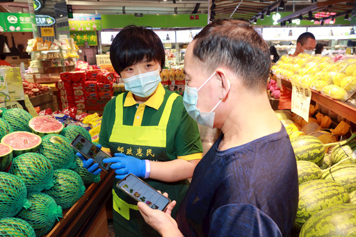 近日,北京連續出現新冠肺炎確診病例,百姓生活受到影響。北京郵政一方面全力做好疫情防控,另一方面利用線下28家郵政惠民生活驛站、線上“郵政菜單”微信服務號,為市民不間斷提供新鮮果蔬供貨及同城配送服務。目前,北京郵政惠民生活驛站每日上架近50種新鮮果蔬,同時向市民供應米面糧油、速凍食品等生活快消品;“郵政菜單”微信服務號線上渠道根據應季需求,每日動態供應近50種基地直采蔬菜及20余種水果。針對微信下單的市民,北京郵政提供“無接觸式”配送服務。圖為郵政惠民生活驛站工作人員向市民介紹“郵政菜單”微信服務號的線上功能。 □記者 楊光 攝影報道