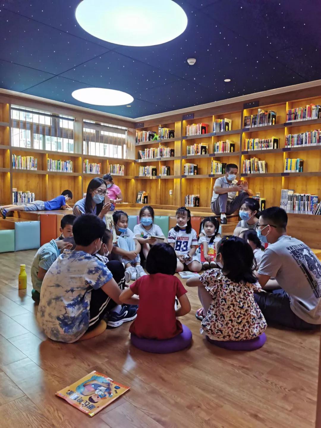 圖為濰坊社區(qū)文化活動中心二樓的星空書屋,一位故事媽媽正帶領(lǐng)孩子們閱讀繪本故事。求是記者 侯亞景 攝