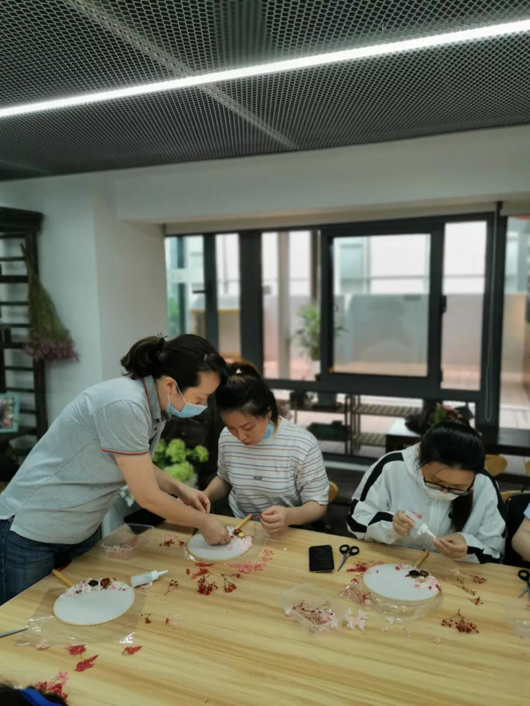 “對,這里的花朵要剪碎一點,做這個要耐心一些。”一位老師正在教海通期貨股份有限公司的10余位員工制作團(tuán)扇,這是活動中心與該公司的團(tuán)建項目。為實現(xiàn)項目合作多元化,活動中心主動和周邊企業(yè)共建,從以承接活動為主向樞紐型平臺良性發(fā)展,以樞紐型陣地騰籠換鳥,引入優(yōu)質(zhì)的工作室資源,不斷輻射附近樓宇白領(lǐng),吸引白領(lǐng)成為常駐粉絲,更加高效的推進(jìn)基層文化服務(wù)。