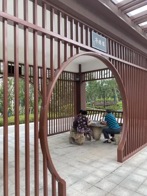 吃過(guò)早飯,記者來(lái)到位于兩江新區(qū)的禮仁公園。公園里栽種著錯(cuò)落有致的樹(shù)木和草坪,形成了漂亮的立體景觀,休閑亭臺(tái)、健身設(shè)施、多功能步道坐落其間,已經(jīng)聚集了不少三五成群的居民在散步休閑。