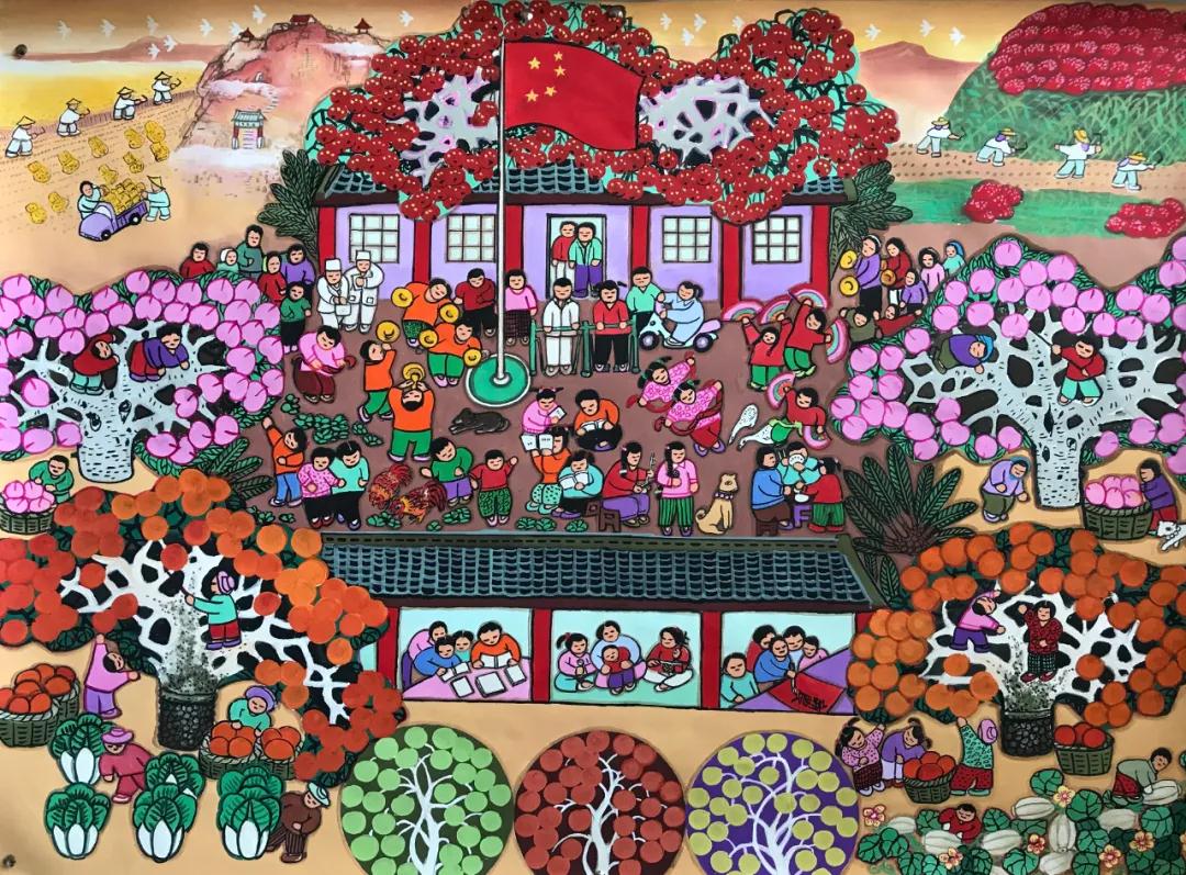 習近平總書記指出:“中國實現了快速發展和大規模減貧同步,貧困人口共享改革發展成果,這是一個了不起的人間奇跡。”當代中國正在書寫“人類歷史上最成功的脫貧故事”,全面小康的光明前景就在前方,“到處都是活躍的創造,到處都是日新月異的進步”,中國大踏步前行的信心從來沒有如此充足飽滿,中國人民的精神從來沒有如此昂揚煥發,這些都為農民畫創作者放歌新時代、描繪新時代提供了充沛自信和豐富靈感。而農民畫活力迸發、各地農民畫鄉不斷涌現,正是中國經濟繁榮發展、社會安定有序、人民安居樂業的生動注腳。