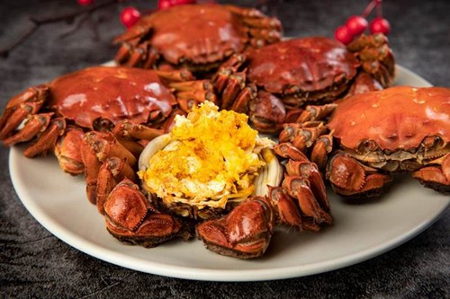 陽澄湖大閘蟹是江蘇省蘇州市特產,更是中國國家地理標志產品。 陽澄湖大閘蟹又名金爪蟹。產于蘇州陽澄湖。蟹身不沾泥,俗稱清水大閘蟹,體大膘肥,青殼白肚,金爪黃毛,肉質膏膩。農歷9月的雌蟹、10月的雄蟹,性腺發育最佳。煮熟凝結,雌者成金黃色,雄者如白玉狀,滋味鮮美。