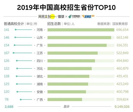 根據(jù)網(wǎng)易數(shù)讀的數(shù)據(jù),錄取通知書的地區(qū)發(fā)放比例,也預(yù)示著大學(xué)新生們將在哪里展開他們新一段的人生。