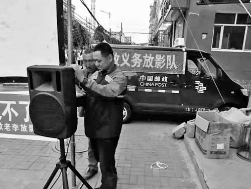 “今年這不是要冷了嗎?我最近放的一場電影是《百團大戰》,再放就得等開春了?!苯?,在吉林省磐石市明城鎮休閑廣場,磐石市郵政分公司明城支局郵遞員李樹山告訴《中國新聞出版廣電報》記者,最近一次放電影有七八十人來觀影。在小鎮上,很多人都是通過看電影而熟識的。