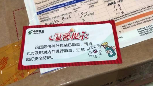 ★ 消費者在接收國際郵件時做好二次防護,佩戴好一次性手套和口罩,并及時對內件進行消毒。