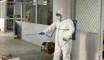 進口郵件的消殺工作是重中之重。當郵車到達場地后,身穿防護服的專職消殺員就會背著消殺噴霧桶對郵車外部、貨倉以及郵袋進行消殺。