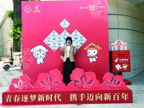 為獻(xiàn)禮廈大百年華誕,中國(guó)郵政集團(tuán)特別為廈門大學(xué)校園主題郵局開通了廈門大學(xué)百年校慶專題個(gè)人定制郵票服務(wù),校友和師生掃描中國(guó)郵政“微郵筒”二維碼進(jìn)入郵票DIY界面,就可讓自己的照片登上郵票,將個(gè)人與廈門大學(xué)百年華誕珍貴瞬間一起定格,永遠(yuǎn)珍藏。該服務(wù)支持線上、線下定制,在主題郵局網(wǎng)點(diǎn)內(nèi)可立等可取。目前有“我在廈大等你”和“鳳凰花開 青春綻放”兩種版式可選。