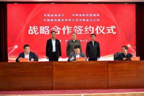 4月13日,河南省商務(wù)廳、河南省郵政管理局與中國郵政集團(tuán)有限公司河南省分公司在鄭州簽署戰(zhàn)略合作框架協(xié)議,以充分發(fā)揮商務(wù)系統(tǒng)和郵政系統(tǒng)優(yōu)勢,推動各方資源共享、優(yōu)勢互補,進(jìn)一步提高商務(wù)和郵政服務(wù)河南經(jīng)濟(jì)社會能力,為農(nóng)村流通體系建設(shè)營造良好的發(fā)展環(huán)境,在助推鄉(xiāng)村振興戰(zhàn)略實施上實現(xiàn)更大突破。