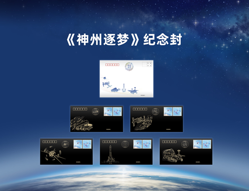《神州逐夢》系列紀念封,包括《東方紅一號衛(wèi)星》《快舟火箭》《中國空間站》《導(dǎo)彈發(fā)射車》和《天問一號探測器》五枚,由310所航科公司年輕的設(shè)計團隊策劃并設(shè)計。紀念封采用黑色特種紙燙金工藝,深邃的黑色象征著廣袤的宇宙和無限可能的未來,金色的航天器、火箭、空間站、導(dǎo)彈發(fā)射車、探測器在黑色背景上閃閃發(fā)光,熠熠生輝。這套能引發(fā)人們太空遨游暢想的主題設(shè)計方案,開創(chuàng)了中國郵政全黑燙金紀念封的先河,酷炫的外表下,進一步提升了該系列紀念封的收藏價值。