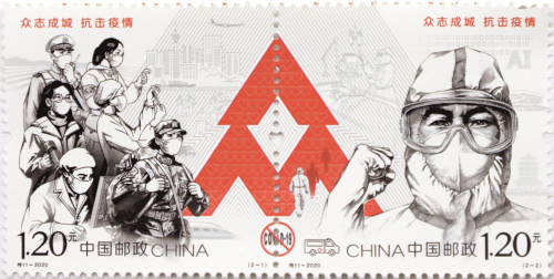 另外,十一屆三中全會召開、奧林匹克運動會、中國夢——國家富強系列郵票等重大事件、題材,濃縮在一枚枚郵票中,讓人眼前一亮。其中,中國郵政于2020年5月11日特別發行的《眾志成城 抗擊疫情》郵票1套2枚,采用連票形式,郵票圖案中“眾”字將兩枚郵票緊密連接,寓意著面對突發重大公共衛生事件,在黨中央堅強領導下,全國上下凝聚起眾志成城、抗擊疫情的強大力量。