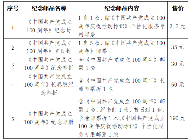 附表:《中國共產(chǎn)黨成立100周年》紀(jì)念郵品銷售方式
