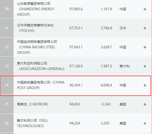 8月2日,2021年《財富》世界500強排行榜單新鮮出爐,中國郵政集團有限公司排名第74位,首次挺進世界前80強;在上榜的世界6家郵政企業(yè)中排第2位,其中年營業(yè)收入排世界郵政第2位,利潤排世界郵政第1位。