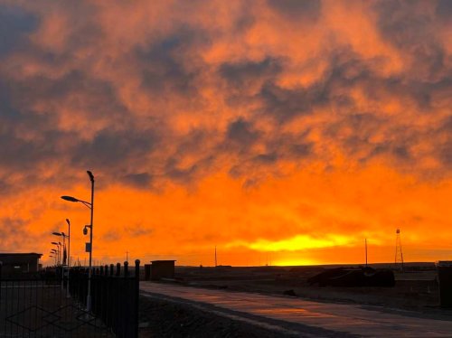 我突然想起今天早上,葛軍開車駛下青藏公路時,車頭向東的一瞬,眼前的景色讓我愣在位置上一動不動:東方的天空火紅一片,在地平線最東端,紅得最熾烈,最濃艷。剎那間,一束炙熱的光芒從紅綢帷幕似的天邊刺出來,像是熊熊燃燒的大火,灼燒著我的雙眼。我倆互相看看,都是一臉的“金色”——那是唐古拉山、長江之源的日出?!斑@次采訪,值了。”我有感于眼前的風光,是我此行最好的禮物。葛軍沖我笑笑說:“多拍點。”
