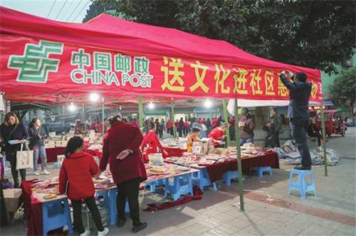“服務全民閱讀,我們還把書店開到群眾身邊。”重慶郵政相關負責人介紹,一方面進商圈、進社區(qū)、進校園開展惠民書展,通過開展大力度的優(yōu)惠購活動,開展教育、健康等文化講堂,引導群眾培養(yǎng)和強化閱讀習慣;另一方面通過推廣《參考消息》《中國國家地理》《讀者》《課堂內(nèi)外》《家庭醫(yī)生》等精品報刊產(chǎn)品,塑造郵政暢銷報刊品牌,優(yōu)化閱讀產(chǎn)品供給,為群眾提供文化惠民便民服務,傳遞精品閱讀價值。