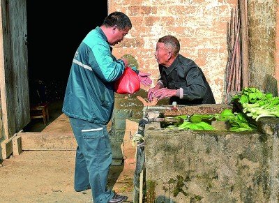 在安徽太湖縣北中鎮(zhèn)桐山村,郵遞員吳義陽將代購的糯米送到老人手中。 新華社發(fā)