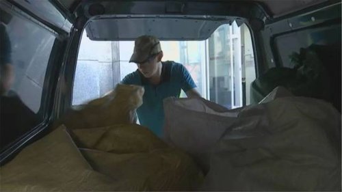 中國郵政集團公司長春市分公司 明德路營業部 主任 李波:報紙裝一袋,再加上雜志,都得超過一百斤(像這樣的,從卸車到二次分揀,再上車搬運,每個快遞員每天是不是都得背三四千斤的一個重量?)他們特班負責大戶單位,要超過這個數。