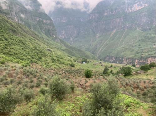 云霧縈繞的山頂上,大片油橄欖林和少許莊稼、蔬菜長勢(shì)正好,其間錯(cuò)落有致地分布著一間間彝族老百姓村舍,竹墻青瓦,簡(jiǎn)樸寧靜。在最高處,一面鮮艷的黨旗迎風(fēng)飄揚(yáng),旁邊有一家簡(jiǎn)易民宿,可供當(dāng)天實(shí)在不能下山的游客小住。遠(yuǎn)遠(yuǎn)看去,有村民已在院外翹首以盼,等待某色爾者到來。