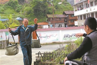 河口鄉(xiāng)位于大山腹地,村與村看似近在眼前,實則山水環(huán)繞,道路蜿蜒曲折。“上山鉆云天,下山到河邊,兩山能對話,走路要半天”是這里的真實寫照。早些年,當?shù)貨]有固定的郵政營業(yè)點。分揀完郵件后,張林昌要用扁擔(dān)挑起三四十斤重的郵包,沿著山路逐戶投遞,一個來回就是90余公里。餓了找點野果,渴了捧口山泉,有時候還要涉溪渡河。第一次送郵件,張林昌整整走了3天。回來時,只見他頭發(fā)蓬亂,褲腳沾滿泥巴,衣服被刺穿了好幾個洞,手腳上還有一道道血印子。但他絲毫不覺得苦:“當過兵的人有一副‘鐵腳板’,走這樣的山路不算事。”