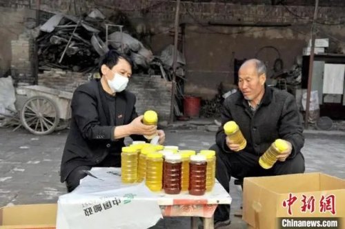 高文杰幫助當?shù)剞r(nóng)戶銷售蜂蜜。 山西郵政供圖