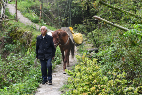 今年72歲的張人越,是湖南省新邵縣大新鎮三和村8組村民,從26歲開始,他就在崎嶇陡峭的山路上幫鄉親們用馬馱東西,給人送貨上門。