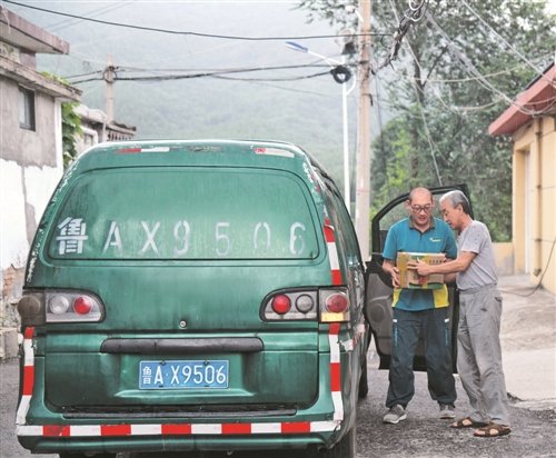 帶著這些郵件,許桂明駕駛郵車冒著大雨在蜿蜒的山路上行進?!吧衔邕€是烈日當頭,汗流浹背,下午就是瓢潑大雨,全身淋透,這在山區很正常。”許桂明說。停好車,撐起傘,許桂明把郵件緊緊抱在懷里,沿著小路跑進村里。10年來,他始終牢記“人民郵政為人民”的服務宗旨,走遍了這15個行政村的家家戶戶,與村民們相熟相知,遇到不方便外出購物的老人以及需要幫助的村民,他都主動幫助捎送生活物資。