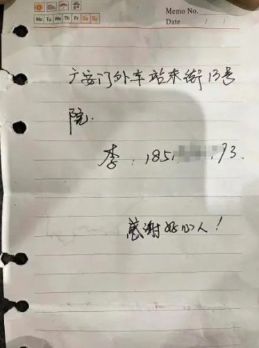 “這個是業主給你的,抽空回個電話?!鼻皟商欤鞒菂^郵政分公司馬連道攬投部高輝收到小區物業保潔人員遞來的一張紙條,上面寫著“感謝好心人!”,還留下了一個地址和一串電話號碼。高輝以為是用戶想要查詢郵件,沒想到電話撥通后,用戶竟非要見他一面,讓他等在原地千萬別走。