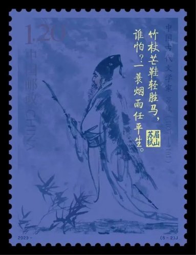 據了解,《中國古代文學家(五)》紀念郵票一套5枚,全套郵票面值6.00元。郵票計劃發行數量為740.35萬套,郵票圖案分別為歐陽修、蘇軾、李清照、陸游、辛棄疾。其中郵票第2枚就是“蘇軾”。