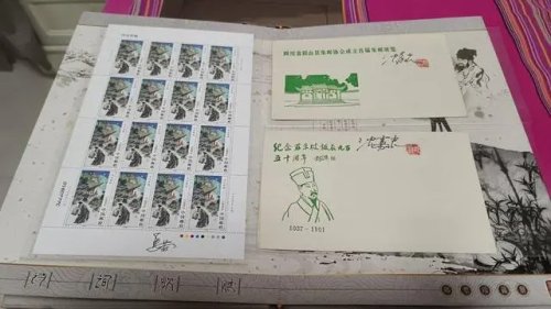 當天,《中國古代文學家(五)》紀念郵票首發儀式在東坡區《千里共嬋娟》主題郵局舉行?!盀榱诉@張郵票,我等了將近一年,今天看到后跟我想象中一樣!”