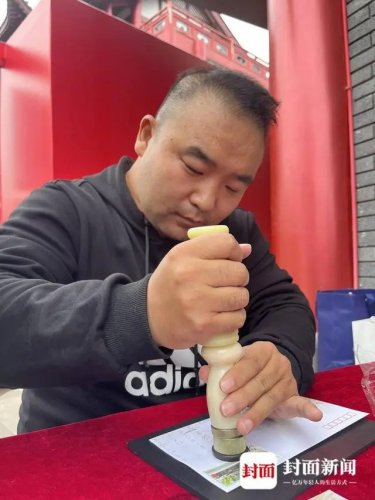 11月8日一大早,拿到蘇軾郵票,36歲的李磊高興不已。此前一天,他從許昌出發,坐了17個小時的火車來到眉山。