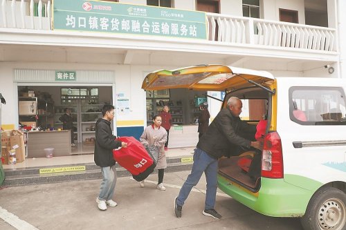 進村的客車既載客,又運送快遞包裹,解決了村民出行、物流進出村等問題