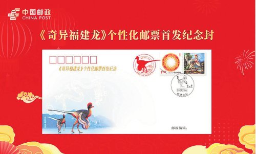 活動當天,《政通人和 奇異龍騰》郵票珍藏冊和《奇異福建龍》異形明信片、紀念封同步發行?!镀娈惛=垺樊愋蚊餍牌惶?枚,體現了“記載億年龍鳥起源地、突出政和特色、彰顯時代特點”的設計理念,極具收藏價值。