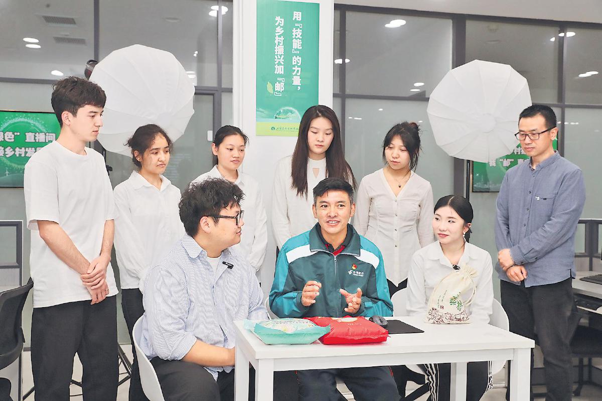 “我們的牦牛喝的是礦泉水,吃的是中草藥,住的是風景區,這樣的牛產出的奶,營養價值怎能不高!”在石郵學院農村電商創新創業實訓中心,哈弄奪機正示范直播帶貨的話術技巧。