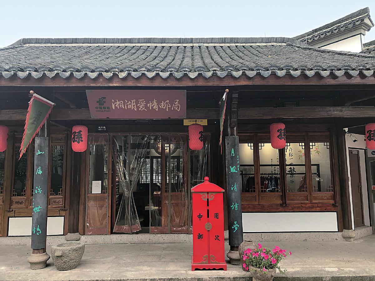 位于浙江省杭州市的蕭山湘湖因風(fēng)景秀麗而被譽(yù)為西湖的“姐妹湖”。在湘湖,有種古韻,叫做下孫文化村。走進(jìn)這個(gè)地域風(fēng)情濃郁的歷史文化村落,沿著主街漫步,一個(gè)別具一格的紅色的“花轎郵筒”映入眼簾——這里就是湘湖愛情郵局。從外觀上看,這是一間裝飾成紅色喜慶風(fēng)格的店鋪。走進(jìn)郵局,里面陳列著各式愛情元素的飾品和明信片,臨窗的一角擺放了中式的傳統(tǒng)服裝,讓郵局更具傳統(tǒng)文化韻味。