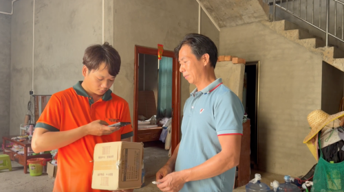 采訪間,正趕上油隘村板新屯村民張美和來(lái)取件,她還順便買了點(diǎn)釀酒的原料。經(jīng)常網(wǎng)購(gòu)的她說(shuō)郵政包裹以前是送到鎮(zhèn)上,需要騎摩托車去取,現(xiàn)在直接從家里過(guò)來(lái),幾分鐘就拿到了,很方便。