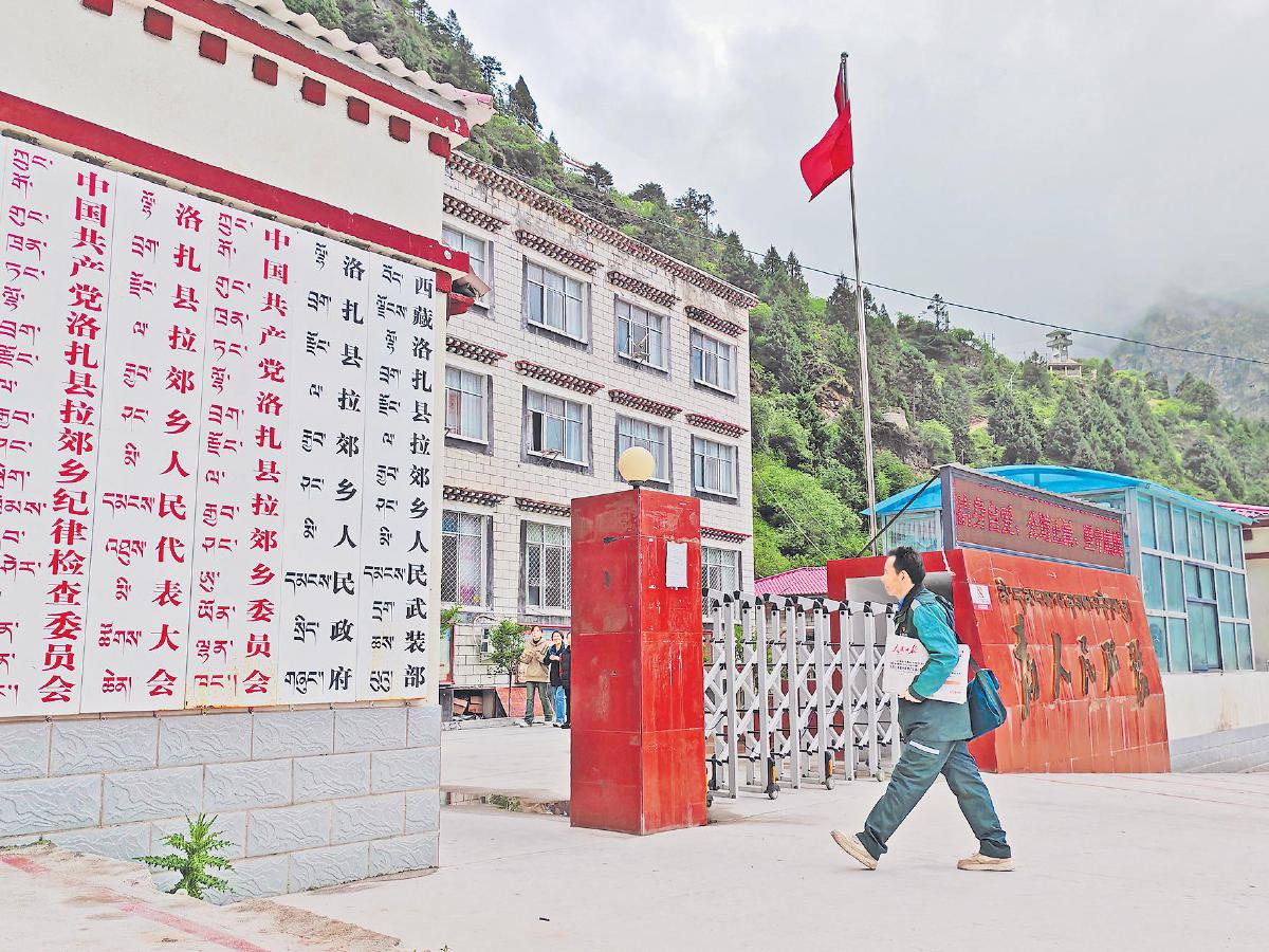 羅布多吉前往拉郊鄉(xiāng)政府投遞郵件。