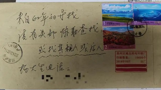 信封背面留的字是:來(lái)自62年的尋找,請(qǐng)有關(guān)部門協(xié)助查找,或找其親人、后人。
