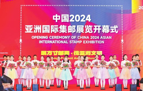 中國福利會少年宮小伙伴藝術(shù)團在亞郵展開幕式上表演開場節(jié)目《永遠(yuǎn)在一起》。□郭尤 攝