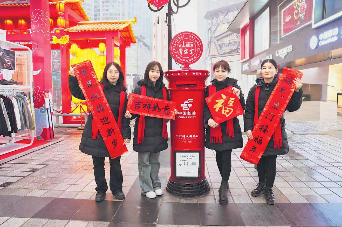 新春來臨,重慶市解放碑主題郵局張燈結彩,紅火的裝飾與整個商圈的喜慶氛圍相得益彰,向游人們述說著郵政與城市的不解之緣。