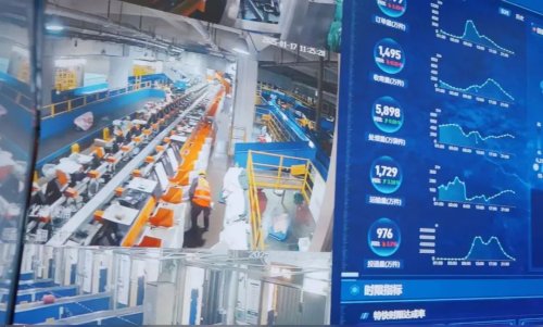 走進中國郵政位于北京的全國指揮調度中心,首先映入眼簾的是一塊布滿整個墻面的智慧大屏。大屏左右兩側的一個個方格中呈現出不同處理中心的實時分揀畫面,中間則可看到各處理中心的郵件量、車輛數、車輛運行軌跡以及異常事件提醒等相關數據信息,整個郵政網絡的運行情況一目了然。