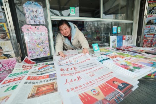 3月5日清晨,當天出版的《人民日報》等黨報,在完成通宵印刷與分揀后,被極速配送至北京600余個重點區域報刊亭。