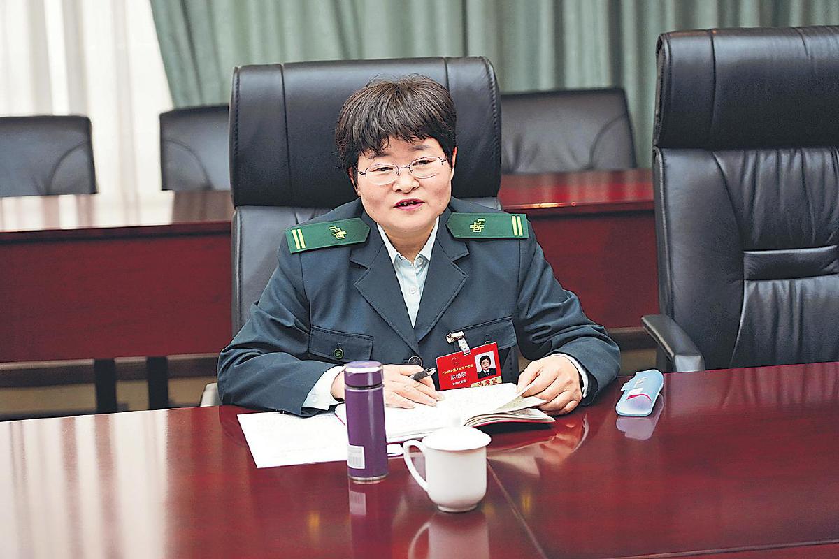 全國人大代表、遼寧省大連市中山區郵政分公司寄遞事業部勝利橋普郵營業部站長趙明枝第一時間來到社區進行走訪,并向居民宣講全國兩會精神,與大家分享參會體會。 □亢俊杰 劉曉明 攝