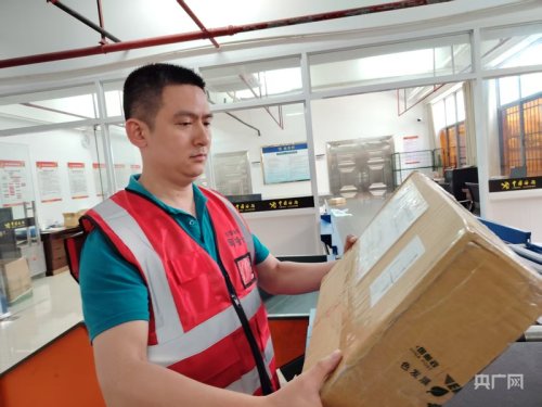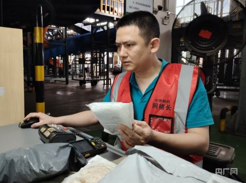 毛自學在??趪H郵件交換站處理國際郵件(央廣網記者 付美斌 攝)