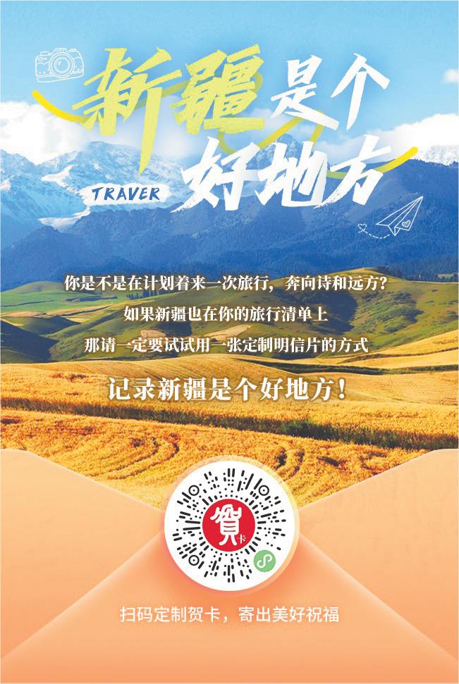 當(dāng)指尖輕點(diǎn),祝福帶著天山的清風(fēng)、大漠的遼闊、湖泊的清澈飛向遠(yuǎn)方時(shí),一份對(duì)新疆的向往也隨之悄然生根。這枚方寸之間的賀卡,承載著郵政服務(wù)民生的溫度,更鏈接著新疆文旅產(chǎn)業(yè)無限可能的璀璨未來——每一次分享,都是新疆走向世界的腳步;每一次心動(dòng),都是文旅繁榮的嶄新起點(diǎn)。