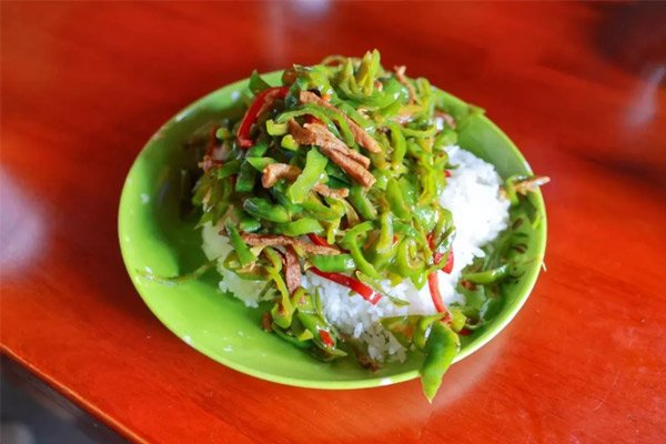午飯時間,鄉政府旁的索多藏餐館里擠滿了來用餐的人。有觀光的游客,有像我們一樣到這里工作的外鄉人,還有本地的老百姓。記者和曲巴一起回憶起10年前在普瑪江塘只能吃面包、泡面的采訪經歷。曲巴說:“現在鄉上開了3家餐館,大家也能吃上熱乎乎的飯菜了。”記者點了一份青椒肉絲蓋飯,曲巴要了一份小白菜蓋飯。我們吃得一干二凈!