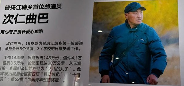 離開普瑪江塘前,普瑪江塘鄉黨委副書記、人大主席洛桑久乃熱情地邀請采訪組參觀位于鄉政府內的邊境紅色教育基地。在普瑪江塘杰出人物展區,記者一下就看到了次仁曲巴事跡的展板,2019年他榮獲了第23屆“中國青年五四獎章”。洛桑久乃充滿感慨地說:“中國郵政和我們地方黨委、政府一樣,無論誰來誰走,都會永遠堅守在這高寒的邊境線上。鄉親們需要我們,國家需要我們!”