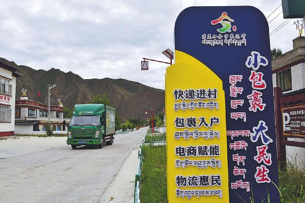 郵車駛進(jìn)普瑪江塘鄉(xiāng),送來了村民們網(wǎng)購的生活日用品。